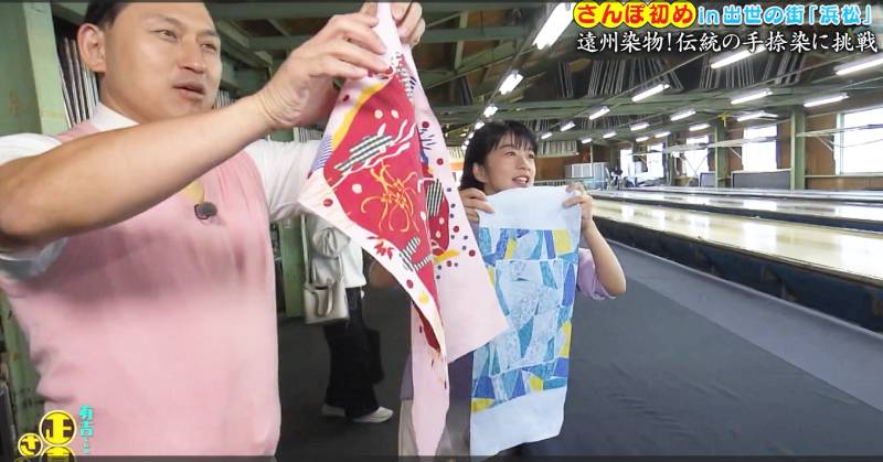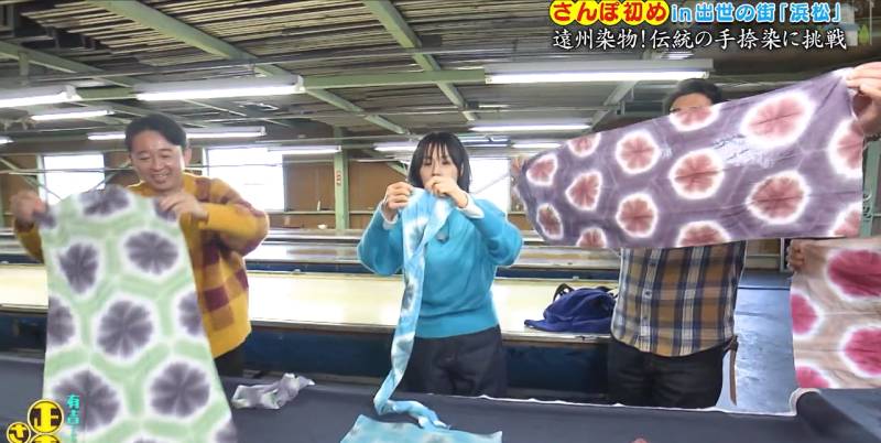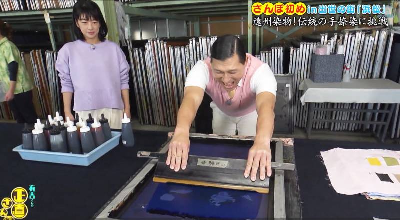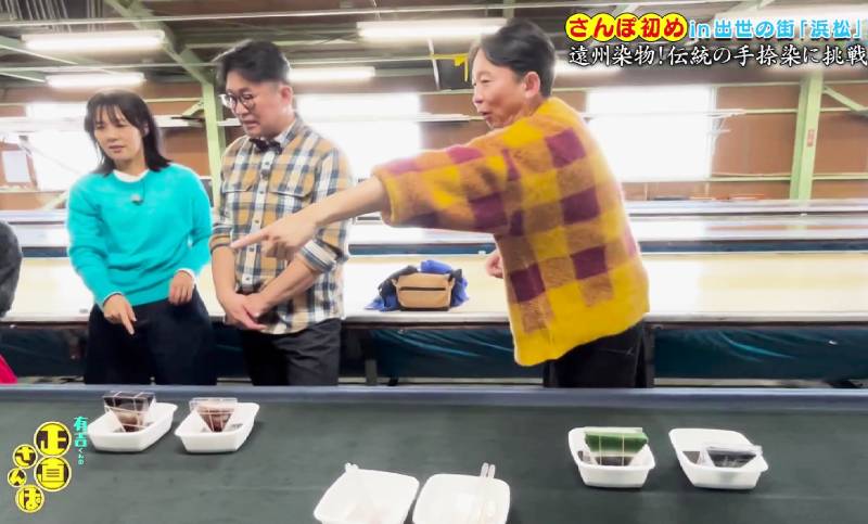 その中で弊社の染色体験が取り上げられ有吉さんやゲストの皆さんが実際にチャレンジした様子が放映されました